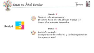 En esta tercera unidad nos adentramos en los territorios más profundos de nuestro árbol familiar: los vínculos con papá, los secretos ocultos, los ciclos de enfermedad y las memorias silenciadas. Aquí reconocemos que sanar es también dar voz a lo que no se dijo, abrazar las heridas no nombradas y permitir que la verdad y el amor fluyan libremente a través de las generaciones.